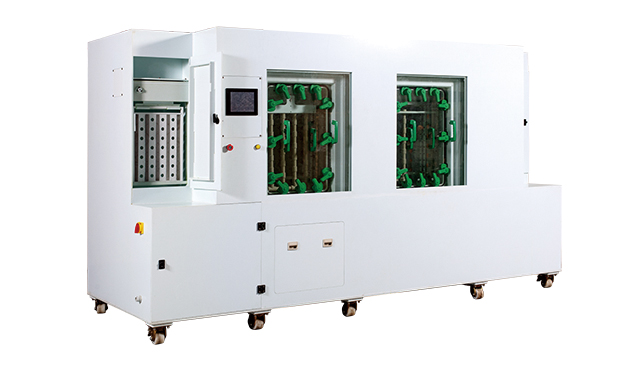 獨特的垂直傳動噴淋蝕刻方式,避免了上水平蝕刻的水池效應,新鮮藥水始終保持與基板接觸,蝕刻速度快,側蝕小,線路精度高;非接觸蝕刻,避免機械傳動對光刻膠的破壞。適合陶瓷薄膜電路、微波電路、IC封裝基板蝕刻、顯影等化學處理過程。傳動噴淋技術,均勻性好,可制作精細線路。
